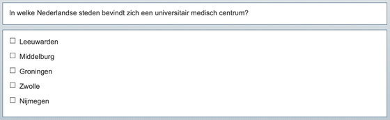 De meer-uit-meervraag (zonder aangeven aantal juiste opties) test de kennis van de student iets preciezer.